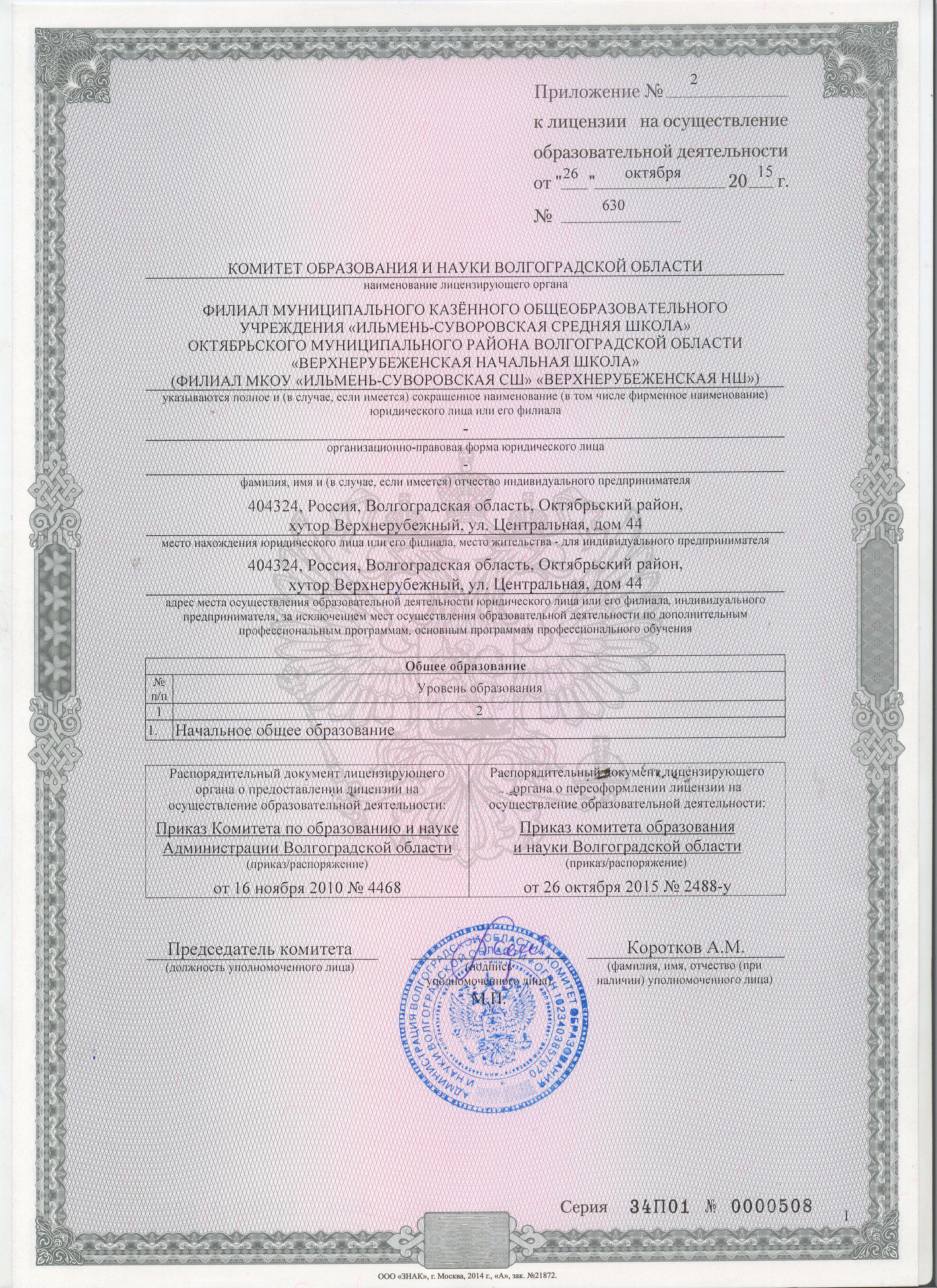 ФИЛИАЛ МУНИЦИПАЛЬНОГО КАЗЁННОГО ОБЩЕОБРАЗОВАТЕЛЬНОГО УЧРЕЖДЕНИЯ "ИЛЬМЕНЬ-СУВОРОВСКАЯ СРЕДНЯЯ ШКОЛА» ОКТЯБРЬСКОГО МУНИЦИПАЛЬНОГО РАЙОНА ВОЛГОГРАДСКОЙ ОБЛАСТИ «ВЕРХНЕРУБЕЖЕНСКАЯ НАЧАЛЬНАЯ ШКОЛА». Сокращенное наименование филиала: ФИЛИАЛ МКОУ «ИЛЬМЕНЬ-СУВОРОВСКАЯ СШ» «ВЕРХНЕРУБЕЖЕНСКАЯ НШ»